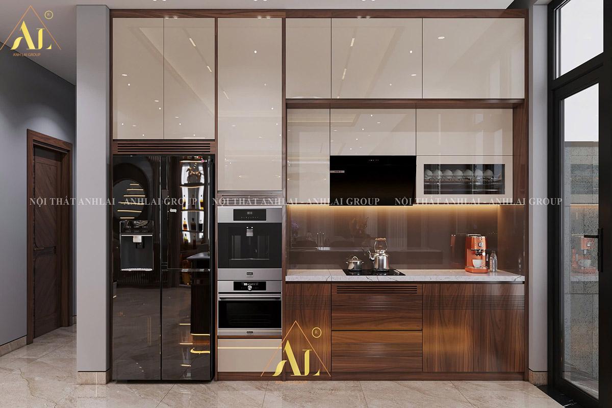 THIẾT KẾ VÀ THI CÔNG PHÒNG BẾP PHONG NGŨ GỖ ÓC CHÓ KẾT HỢP GỖ SỒI